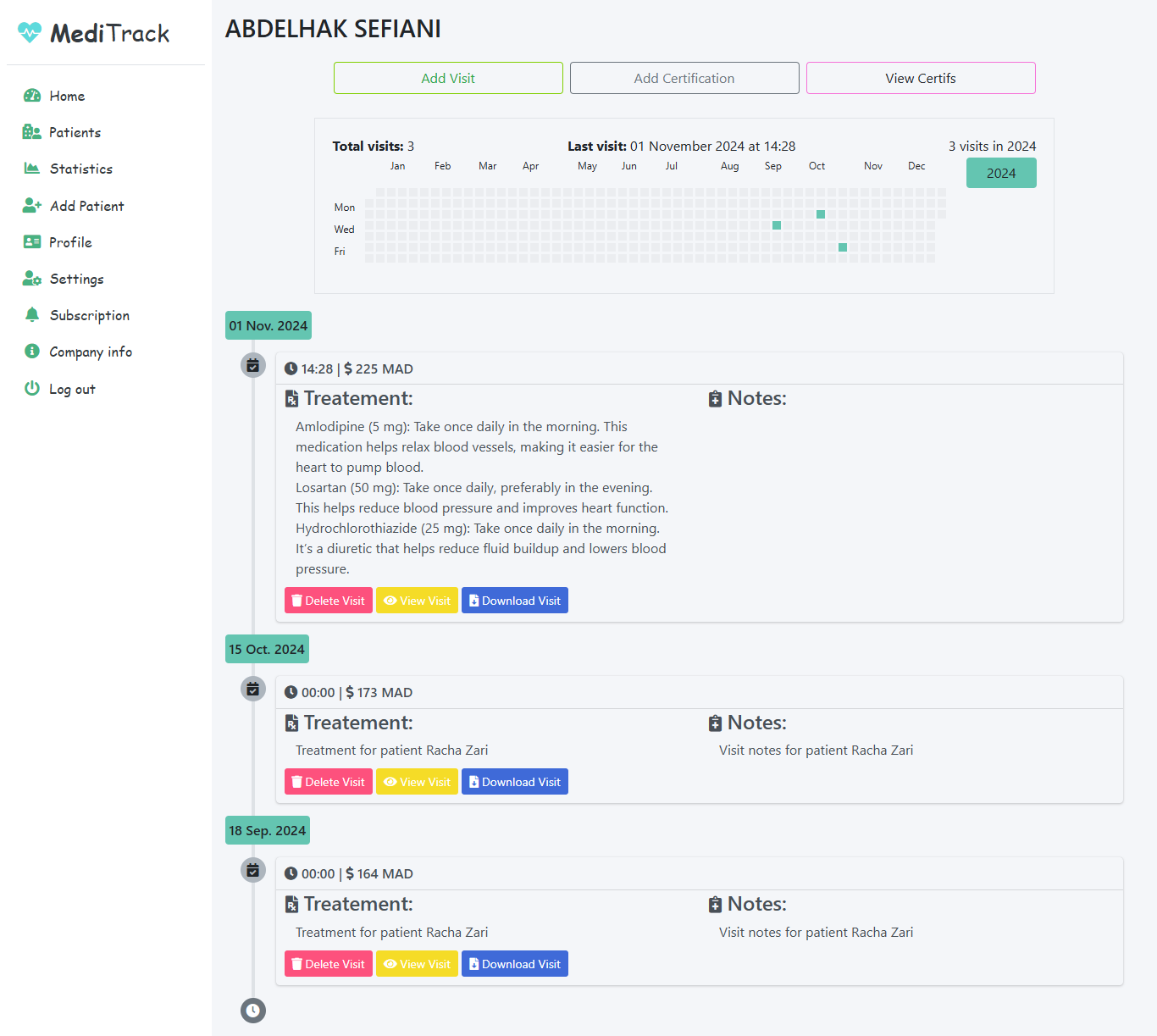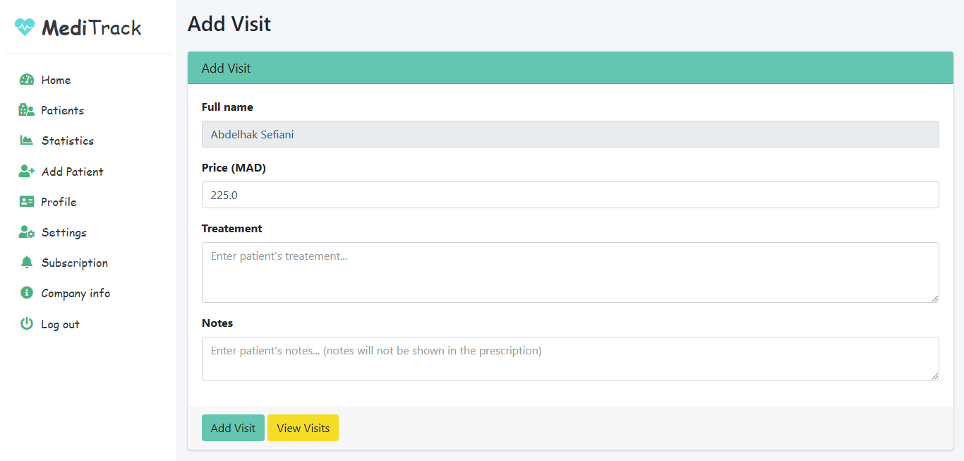 - Add Visit: Schedule a new visit for this patient.