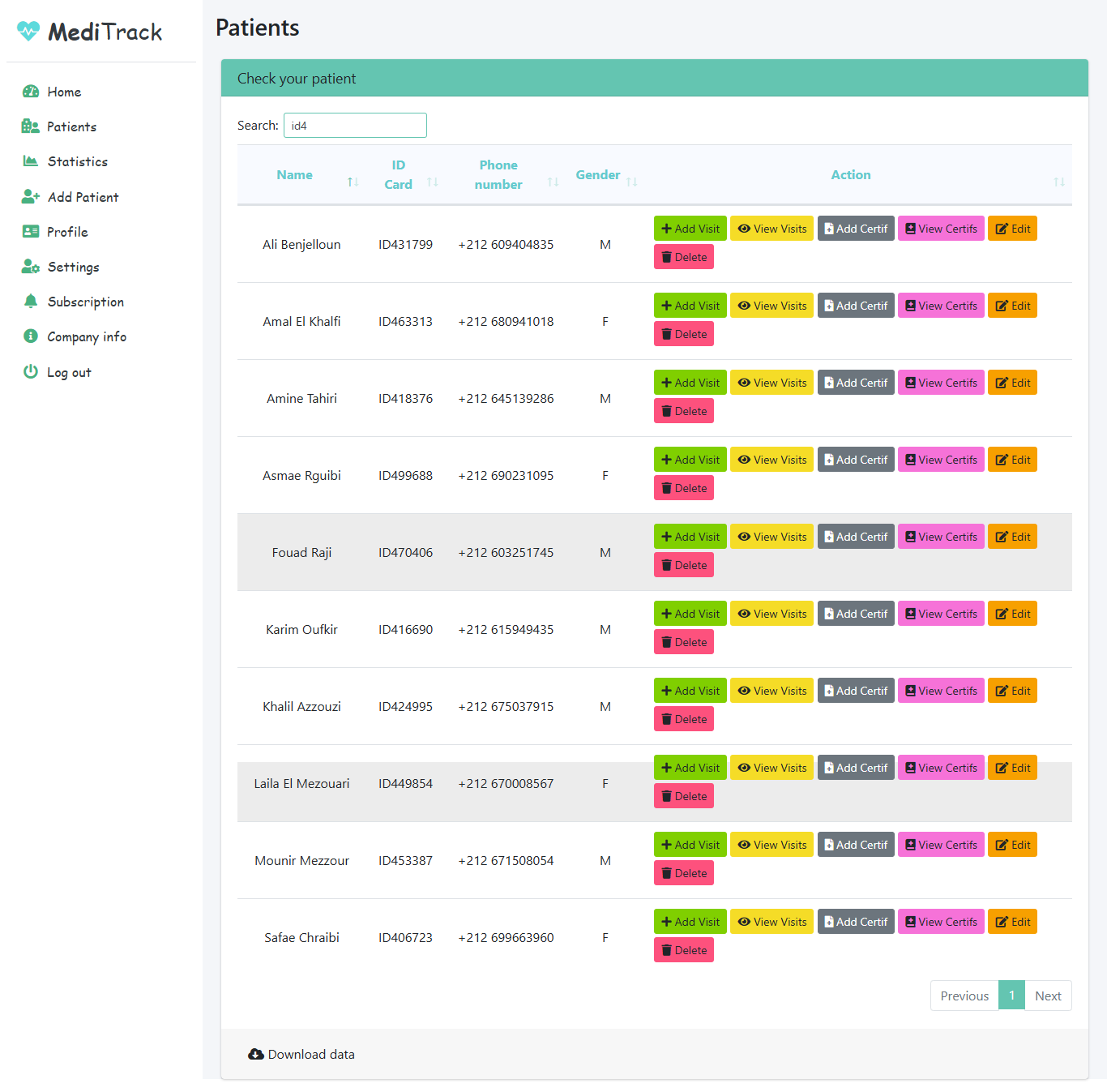 This page allows you to easily manage your patient list and their informations.